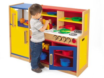 All around, it looks like a solid product if you are hoping for a kids' play kitchen set that is affordable, and made of wood (as most wood sets are more expensive). Step2 Grand Walk-In Kitchen & Grill If you are looking for something really fancy, this Step2 walk-in kitchen and grillis a great option. A play kitchen set includes food, utensils, sink, cookware and other toys to give them a real kitchen experience. Kids learn a lot by observation, so having a tiny kitchen to themselves, encourages tiny chefs to learn and cook some delicious pretend food. At Target,